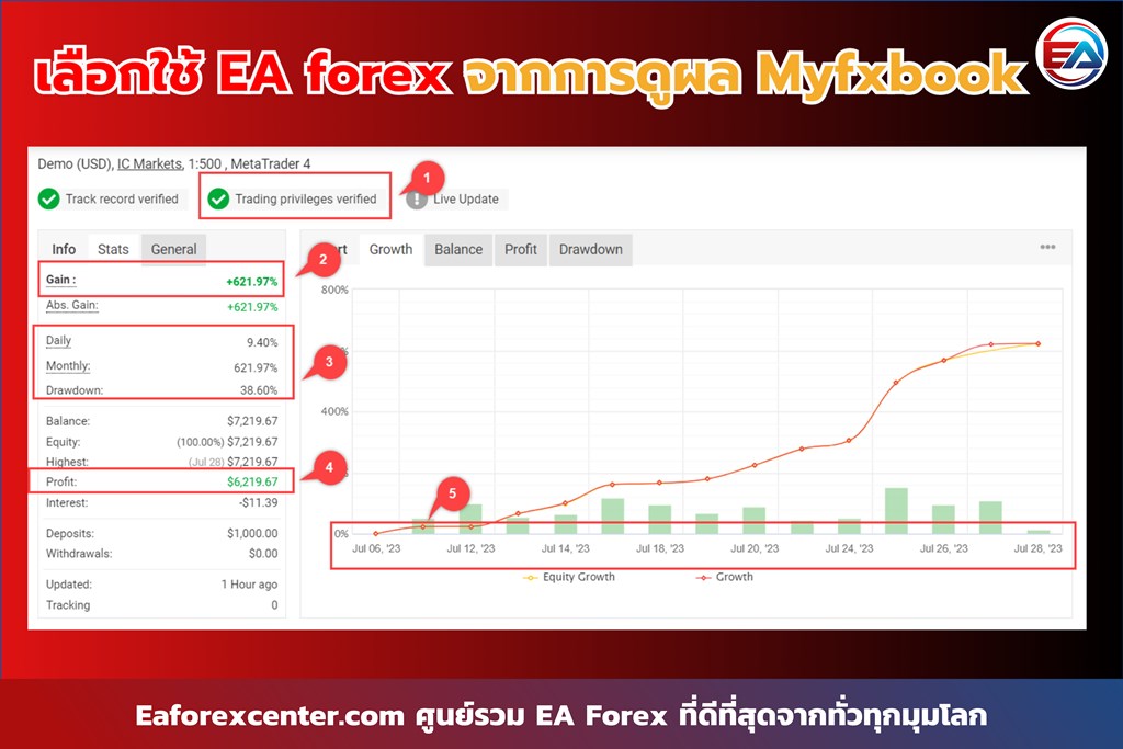 เลือกใช้ EA Forex จากการดูผล Myfxbook
