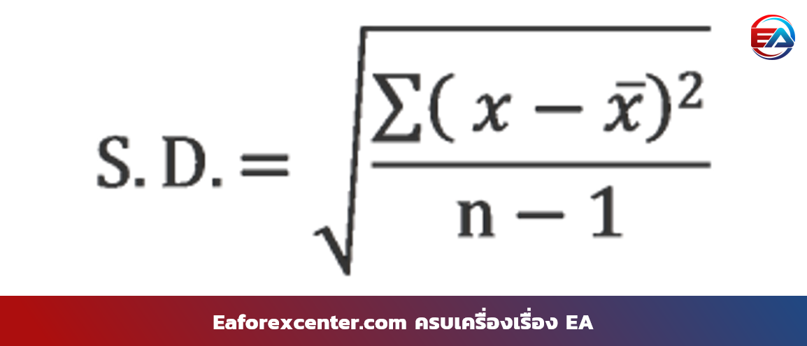 - SD is Standard Deviation: SD is the standard deviation where X = closing price of each candlestick and Xbar = average of closing prices, which is the MA line, with the following equation:
