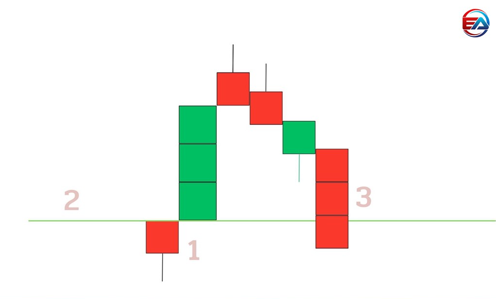- Find a pattern of 1 large green candle and a red candle where the opening price of the red candle must be lower than the closing price of the green candle.
