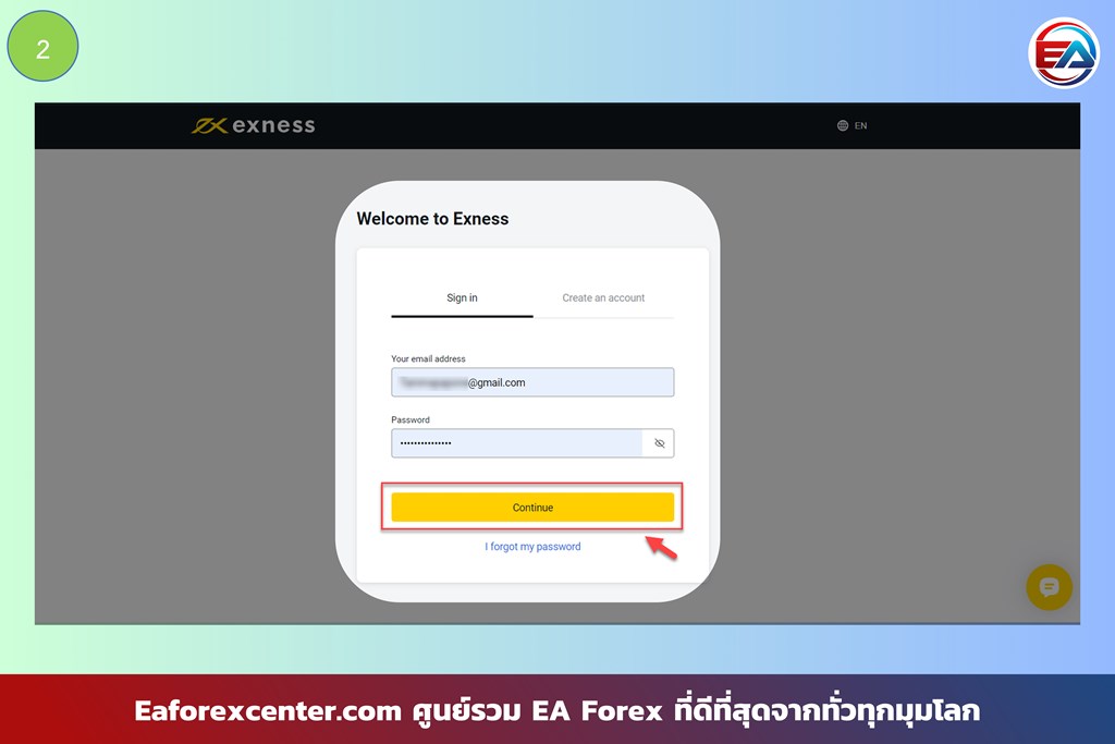 รูปที่ 2 หน้าต่างใส่ Email และ Password เพื่อเข้าสู่ระบบ Exness